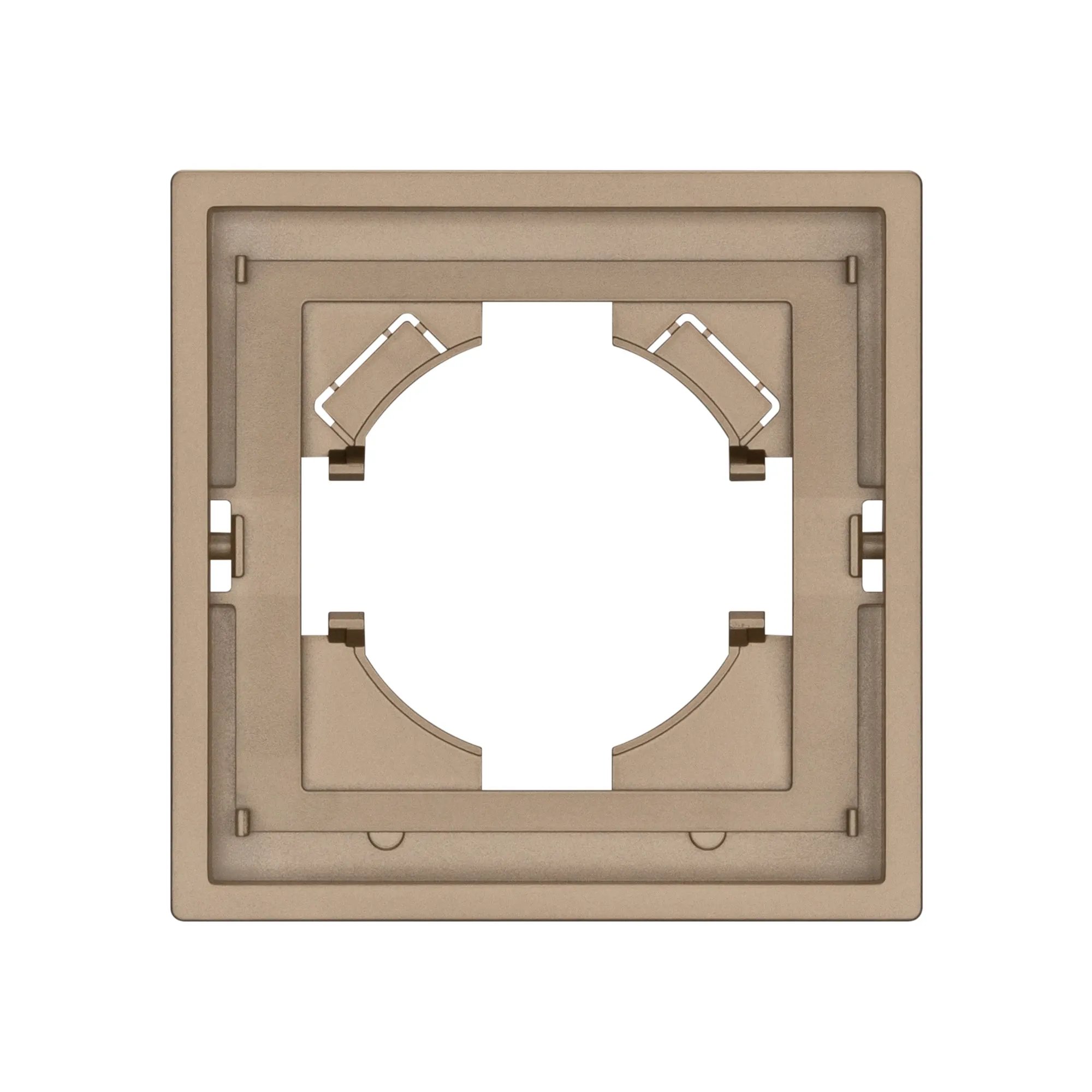 Рамка пластиковая на 1 пост, под встраиваемый механизм. Цвет - золотой. Среднего уровня герметичности IP20. Ориентация монтажа горизонтальная. Габаритные размеры: длина 80 мм, ширина 80 мм, высота 9 мм. Гарантийный срок 12 мес.