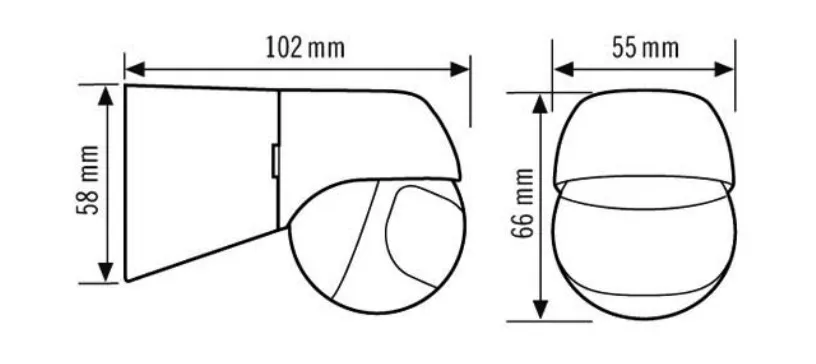- Регулировка диапазона обнаружения и дальности действия с помощью поворачивающейся и наклоняемой сферической головки