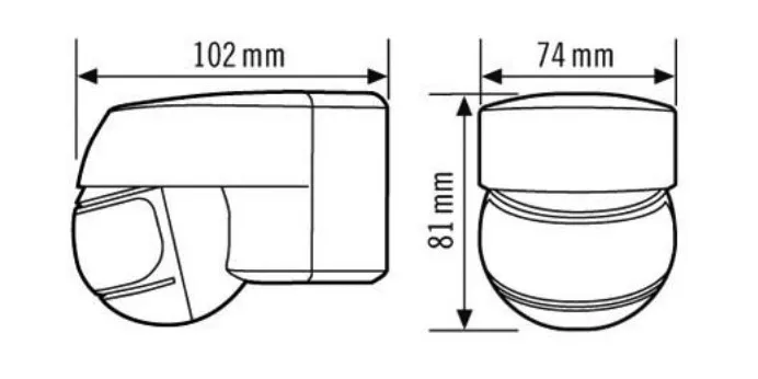 - Регулировка диапазона обнаружения и дальности действия с помощью поворачивающейся и наклоняемой сферической головки