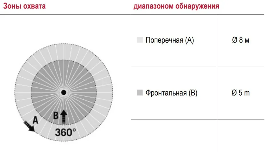 • Дальность действия до 8 м в диаметре при рекомендованной монтажной высоте 3 м (максимальная монтажная высота 5 м), для установки в небольших помещениях и проходах с отсутствием или малой долей естественного освещения
