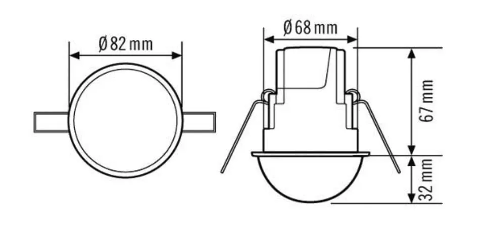 - Датчик движения для встраивания в потолок с зоной охвата 360°