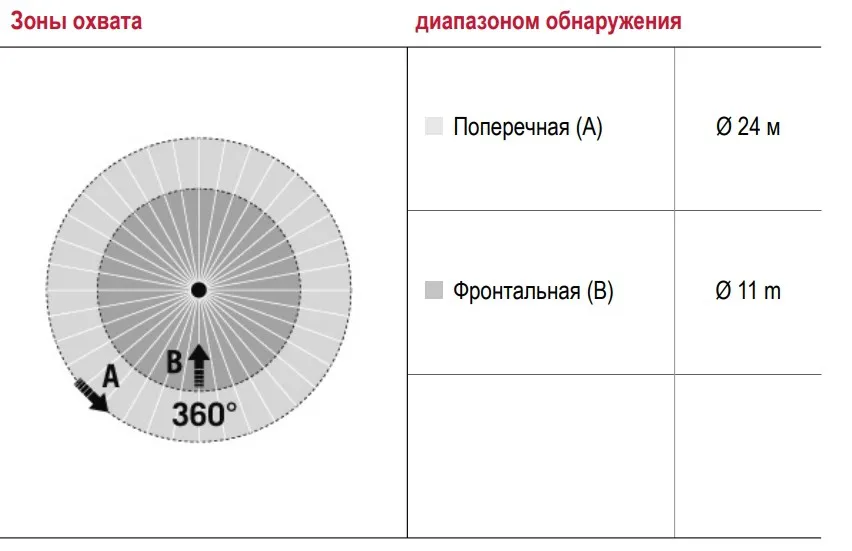 | диапазоном обнаружения Фронтально | Ø 11 м |