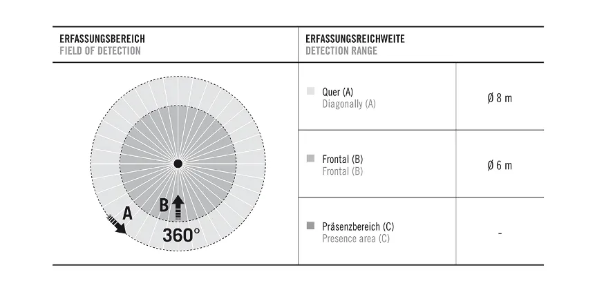 | Дальность обнаружения по диагонали | Ø 8 m |
