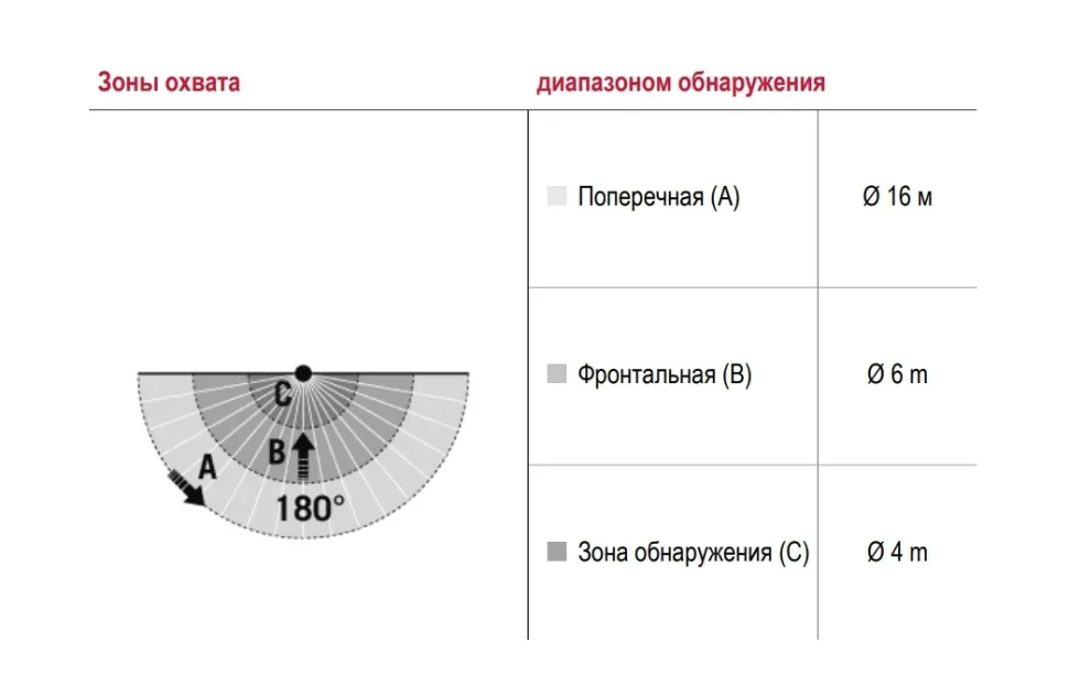 | Угол охвата, диапазон обнаружения | Ø 4 м |
