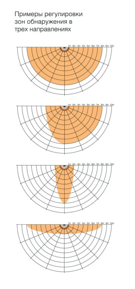 Зона обнаружения регулируется по 3 осям |