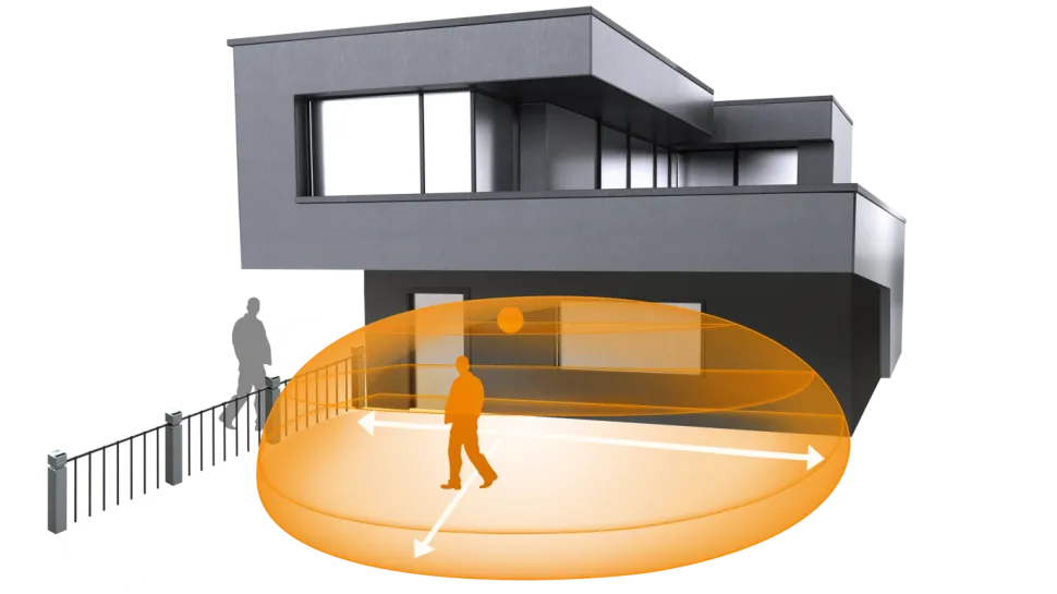 Полный, бескомпромиссный, безупречный. IHF 3D - идеальный детектор движения для улицы. Неважно, на фасадах, навесах, на террасах или на парковках - интеллектуальный высокочастотный датчик включает свет только тогда, когда это действительно необходимо. Во-первых, потому что он может отличать движения человека от движений кустарников, мелких животных и дождя. А во-вторых, потому что пользователь может установить радиус обнаружения максимум 7 метров во всех трех измерениях точно в соответствии со своими индивидуальными потребностями. И в любую погоду.