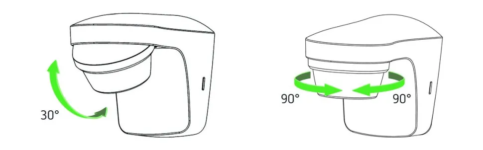 • Сенсорная головка датчика может быть повернута на ± 90° по горизонтале и на 30° вниз