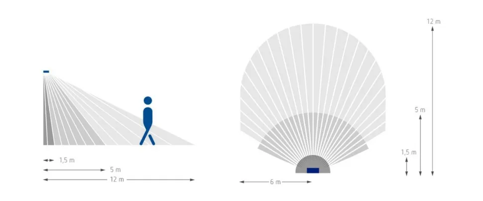 • Отдельная зона обнаружения непосредственно под датчиком (защита от «подползания»)