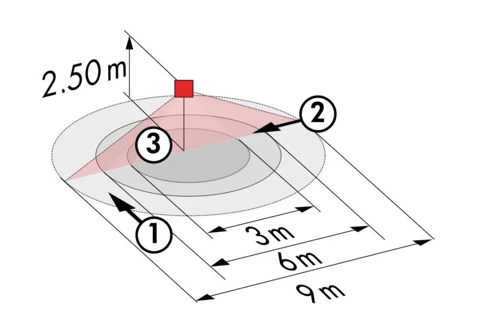 • Дальность действия перпендикулярно макс. Ø 9 м