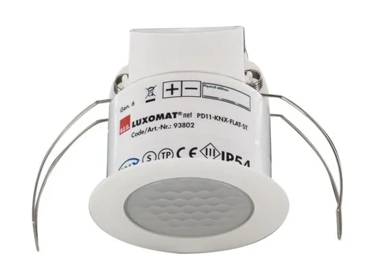 • Ультра плоский датчик присутствия KNX со встроенным разъемом шины KNX
