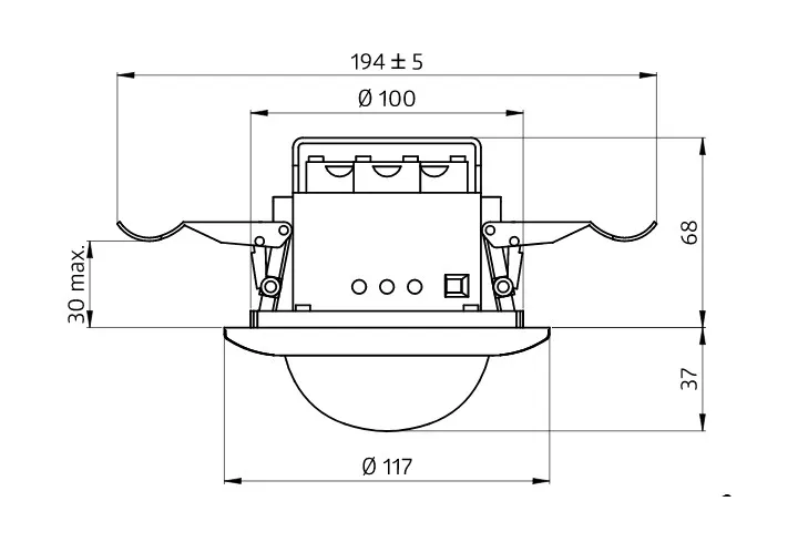 - Высокочувствительный датчик присутствия с возможностью автоматической адресации до 64 DALI устройств и сегментированным контролем до 4-х зон.