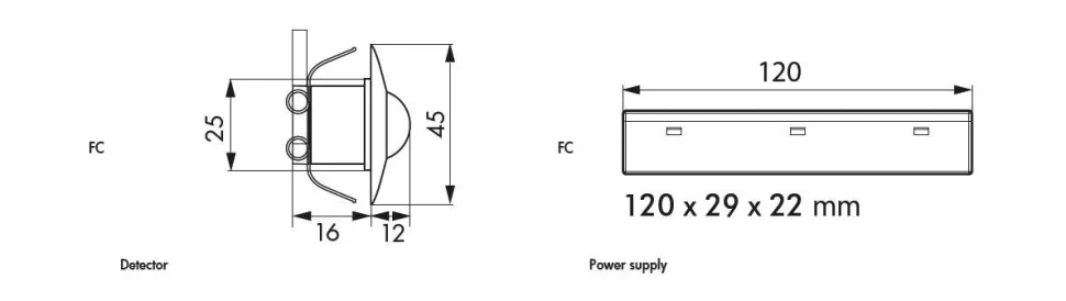 - Габариты Датчик: Ø 45 x 28 мм, силовая часть: 129 x 29 x 22 мм