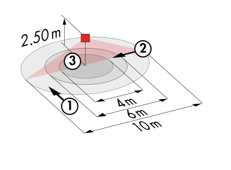 - Дальность действия перпендикулярно макс. Ø 10 м