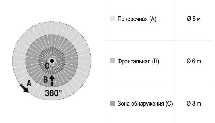 • Дальность действия до 8 м в диаметре при рекомендованной монтажной высоте 3 м для комфортных применений