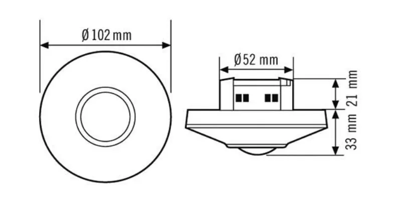• Датчик присутствия для встраивания в потолок в монтажную коробку с зоной охвата 360°