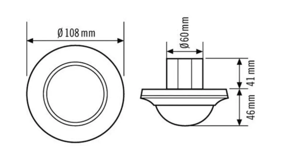 • Зона обнаружения 24м в диаметре при рекомендованной монтажной высоте 3 м (максимальная монтажная высота 5 м)