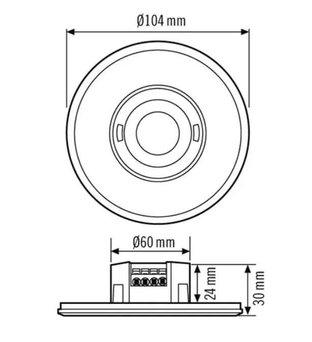 Монтажные размеры Глубина монтажа: 24 мм, Ø 60 мм