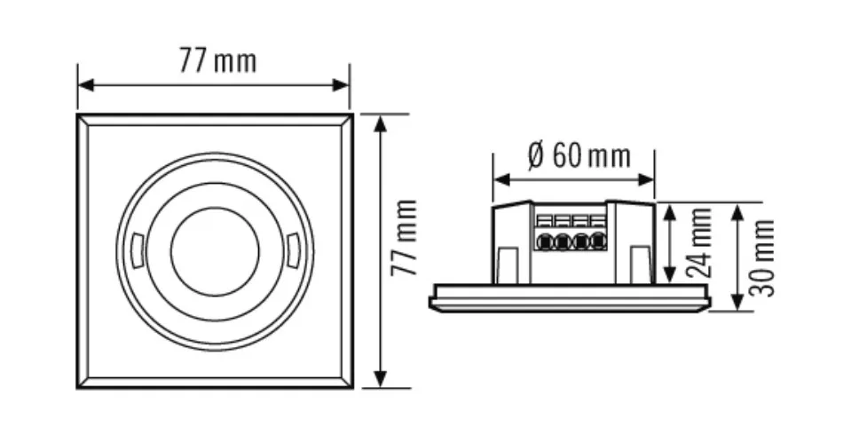 Примерные Длина 77 мм x Ширина 77 мм x Высота/глубина 30 мм