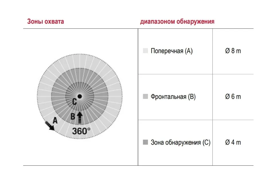диапазоном обнаружения Фронтально Ø 6 м
