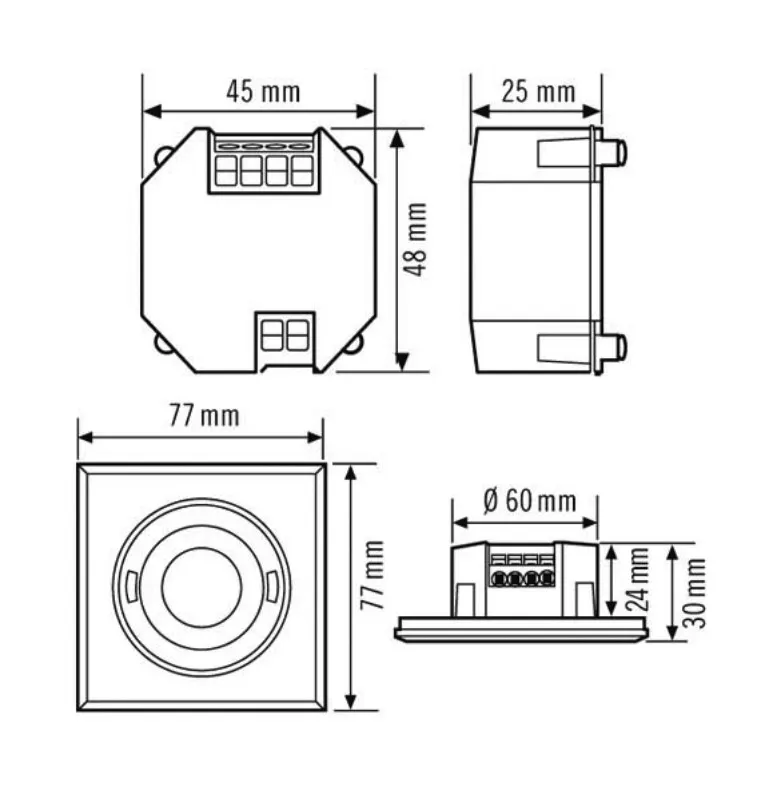 | Примерные | Длина 77 мм x Ширина 77 мм x Высота/глубина 30 мм |