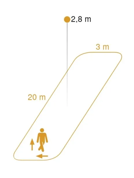 Двухходовой датчик HF работает с новаторским вариантом высокочастотной технологии. Система оснащена 2 датчиками, каждый из которых контролирует одно направление прохода. Вместе они преодолевают добрых 20 метров в направлении ходьбы - плавно, точно, безопасно. Тангенциальный диапазон намеренно ограничен шириной прохода, чтобы движения, например, за закрытыми дверями, не обнаруживались.