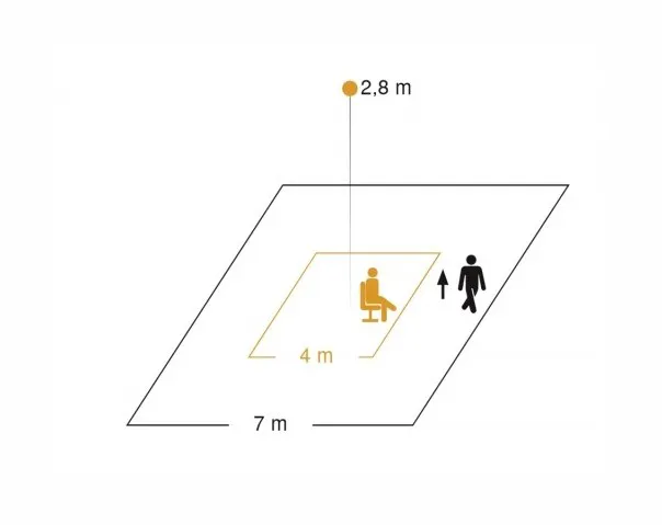 Имея 1760 коммутационных зон, он устанавливает новые стандарты качества обнаружения, особенно в небольших офисах, складских помещениях, служебных помещениях, подсобных помещениях и умывальных. Зона обнаружения квадрата также может быть масштабирована механически без потери качества - возможность, которая является эксклюзивной для STEINEL Professional Presence Control PRO.