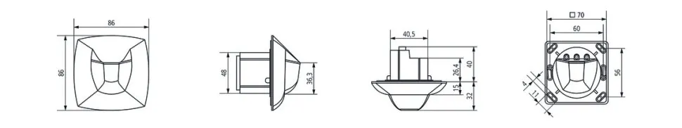 | Зона обнаружения | 100 m² (ø 16 m | 180°) |