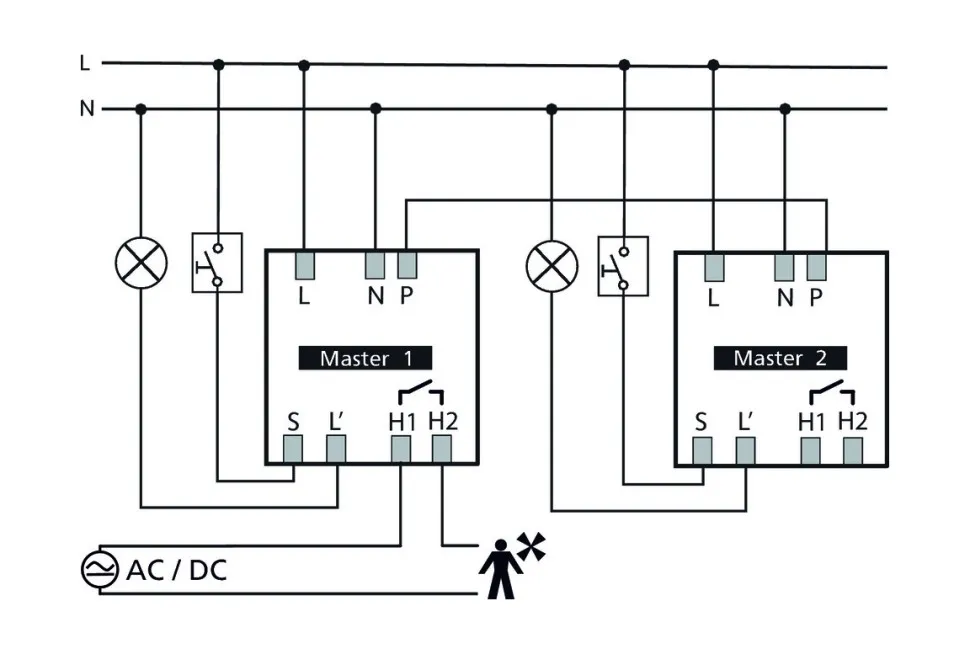 - Возможность подключения кнопок или выключателей для ручного управления освещением; автоматическое распознавание подключенных кнопок/выключателей