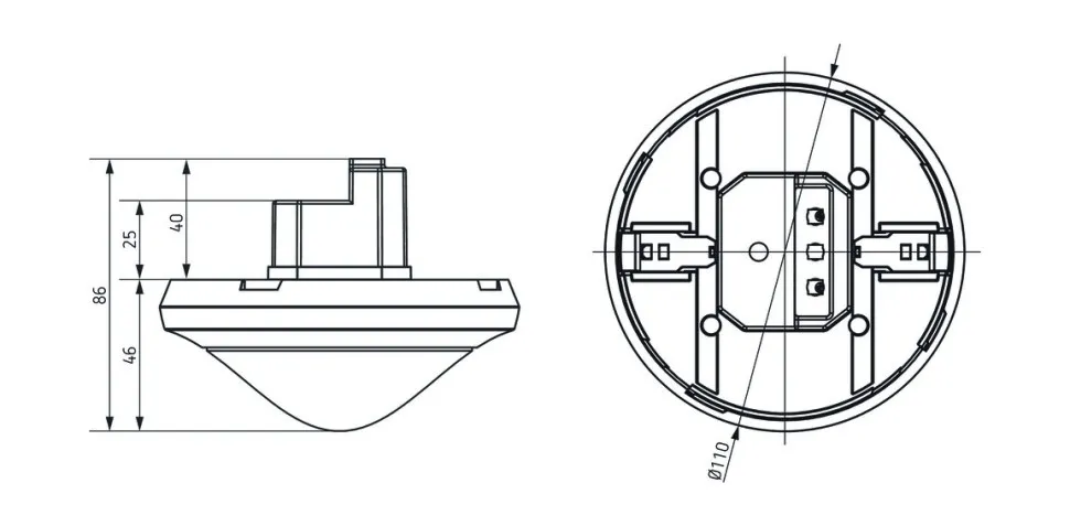 Зона обнаружения 452 m² (ø 24 m | 360°)