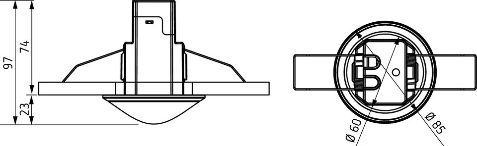 • Круглая зона обнаружения 360°, до Ø 9 m (64 кв.м)