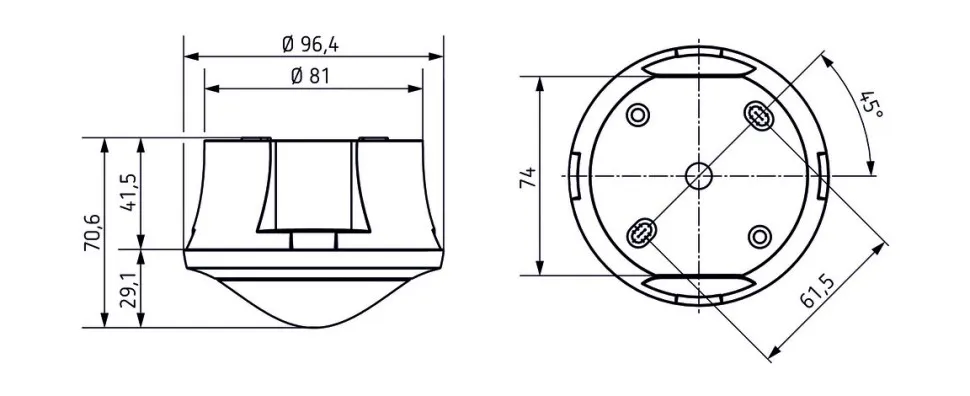 • Круговая зона обнаружения 360°, до Ø 8 м (50 м 2 ) при монтажной высоте 3 м