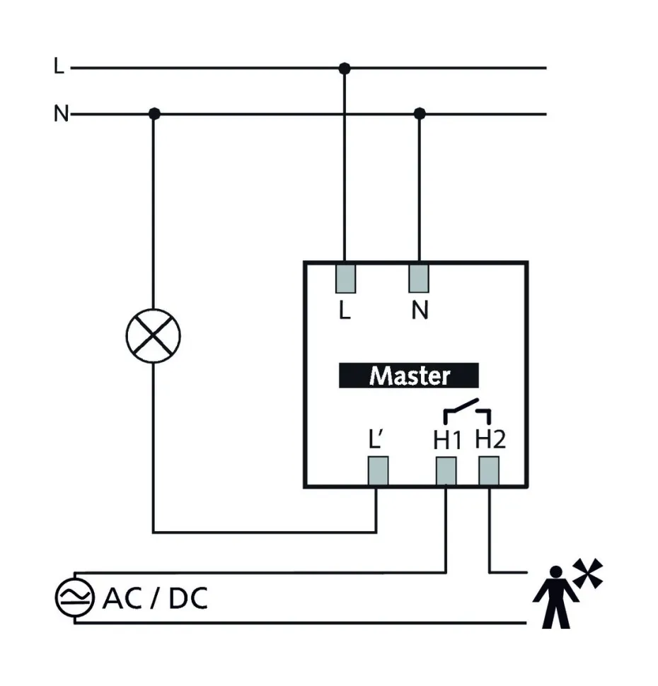 • 1 канал освещения (реле, 230 В) и 1 канал присутствия (реле, плавающее для управления HVAC)