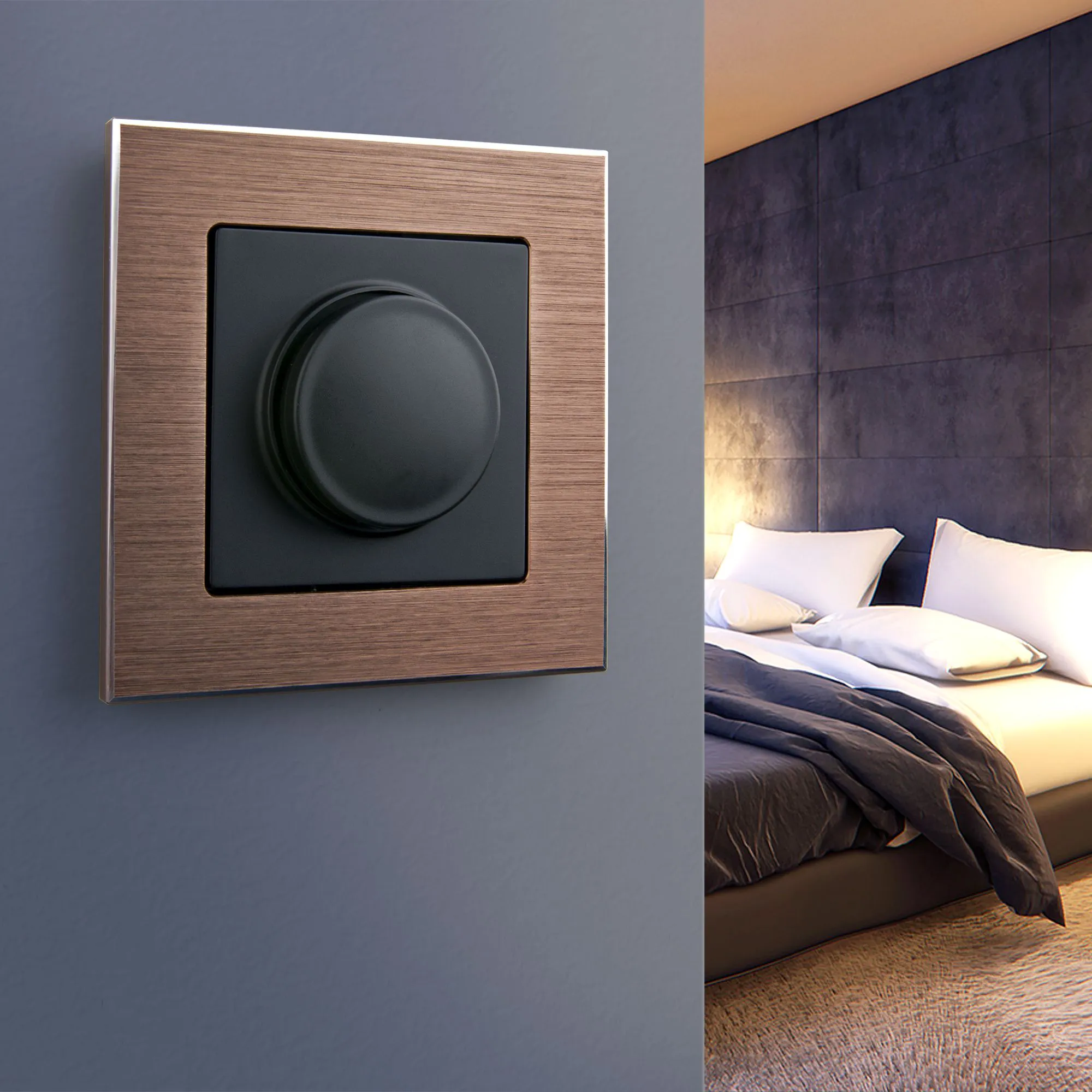 С помощью современного диммера Werkel легко изменять уровень освещенности в помещении. Включение и выключение производится нажатием на кнопку. Изменение режима яркости и интенсивности светового потока регулируется поворотной кнопкой. Диммер совместим со светодиодными диммируемыми, галогенными лампами и лампами накаливания. Диммер можно использовать в тандеме с проходным выключателем. Для надежной и бесперебойной работы диммера рекомендуется оставлять запас мощности ~15% (510 Вт), при максимальной мощности 600 Вт, для диммируемых светодиодных ламп ~15% (170 Вт), при максимальной мощности 200 Вт.