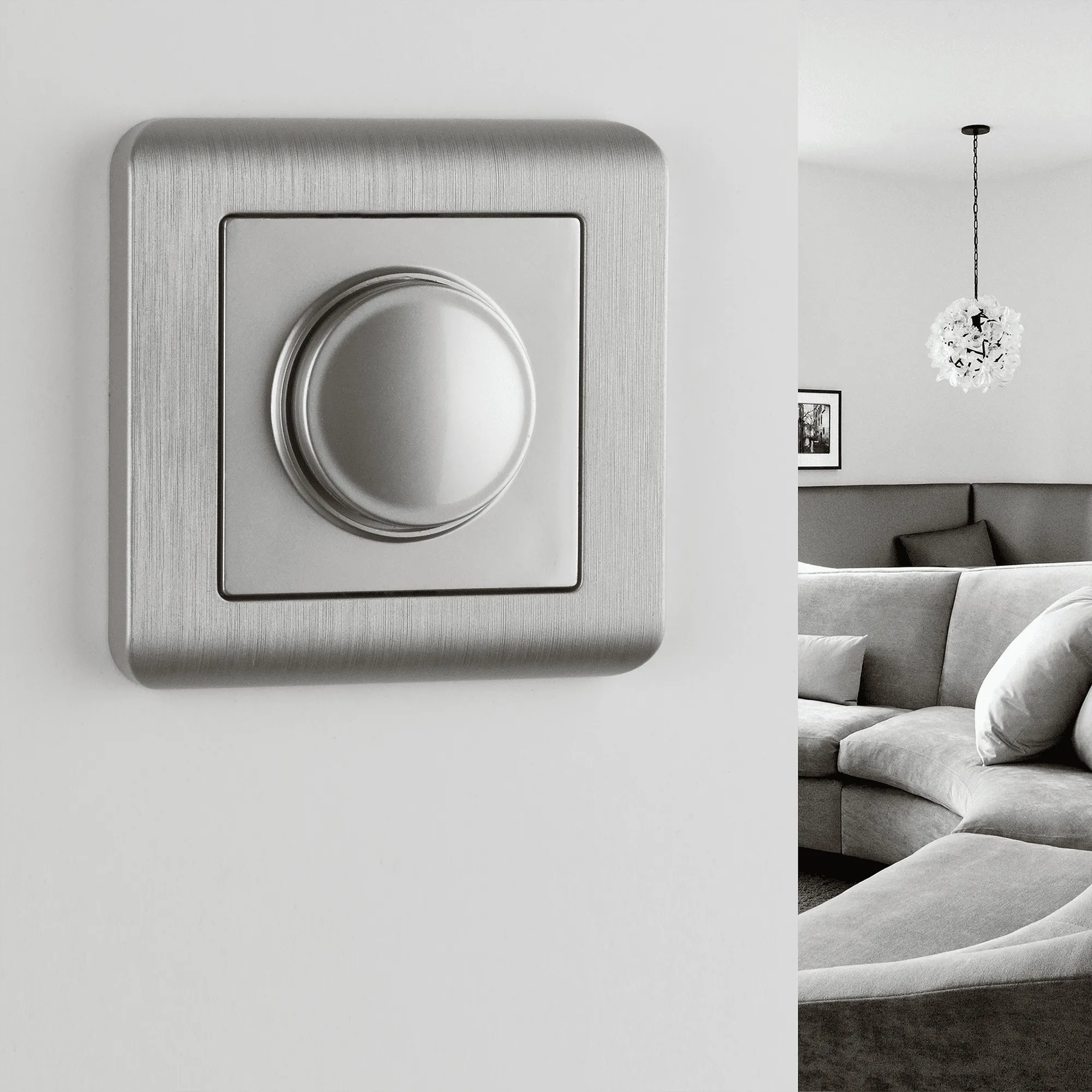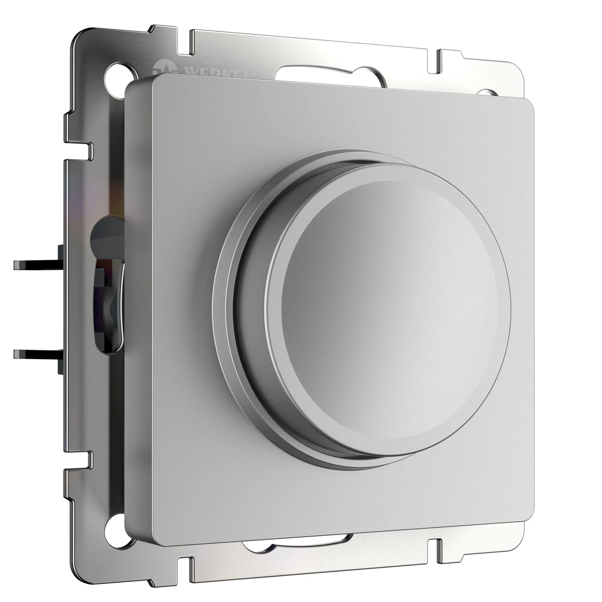 С помощью современного диммера Werkel легко изменять уровень освещенности в помещении. Включение и выключение производится нажатием на кнопку. Изменение режима яркости и интенсивности светового потока регулируется поворотной кнопкой. Диммер совместим со светодиодными диммируемыми, галогенными лампами и лампами накаливания. Диммер можно использовать в тандеме с проходным выключателем. Для надежной и бесперебойной работы диммера рекомендуется оставлять запас мощности ~15% (510 Вт), при максимальной мощности 600 Вт, для диммируемых светодиодных ламп ~15% (170 Вт), при максимальной мощности 200 Вт.