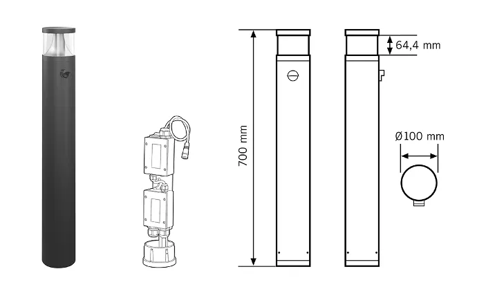 | Примерные | Высота/глубина 700 mm, Ø 100 mm |