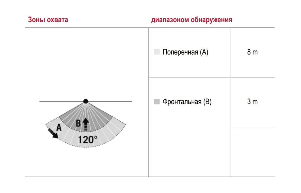 | Угол обнаружения | 120°, с горизонтальным и вертикальным вращением +/- 180° |