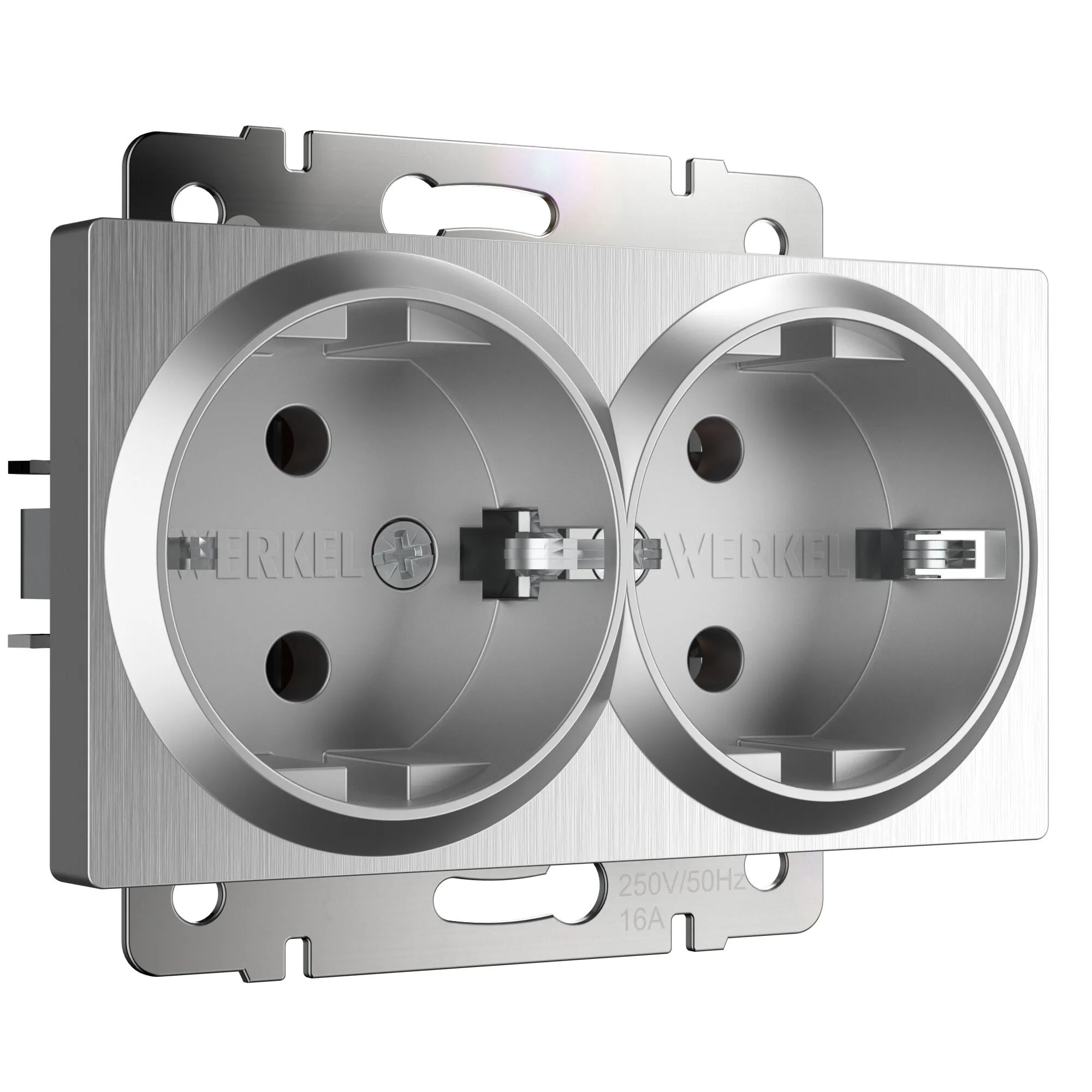 Розетка двойная с заземлением (серебряный рифленый) W1172009