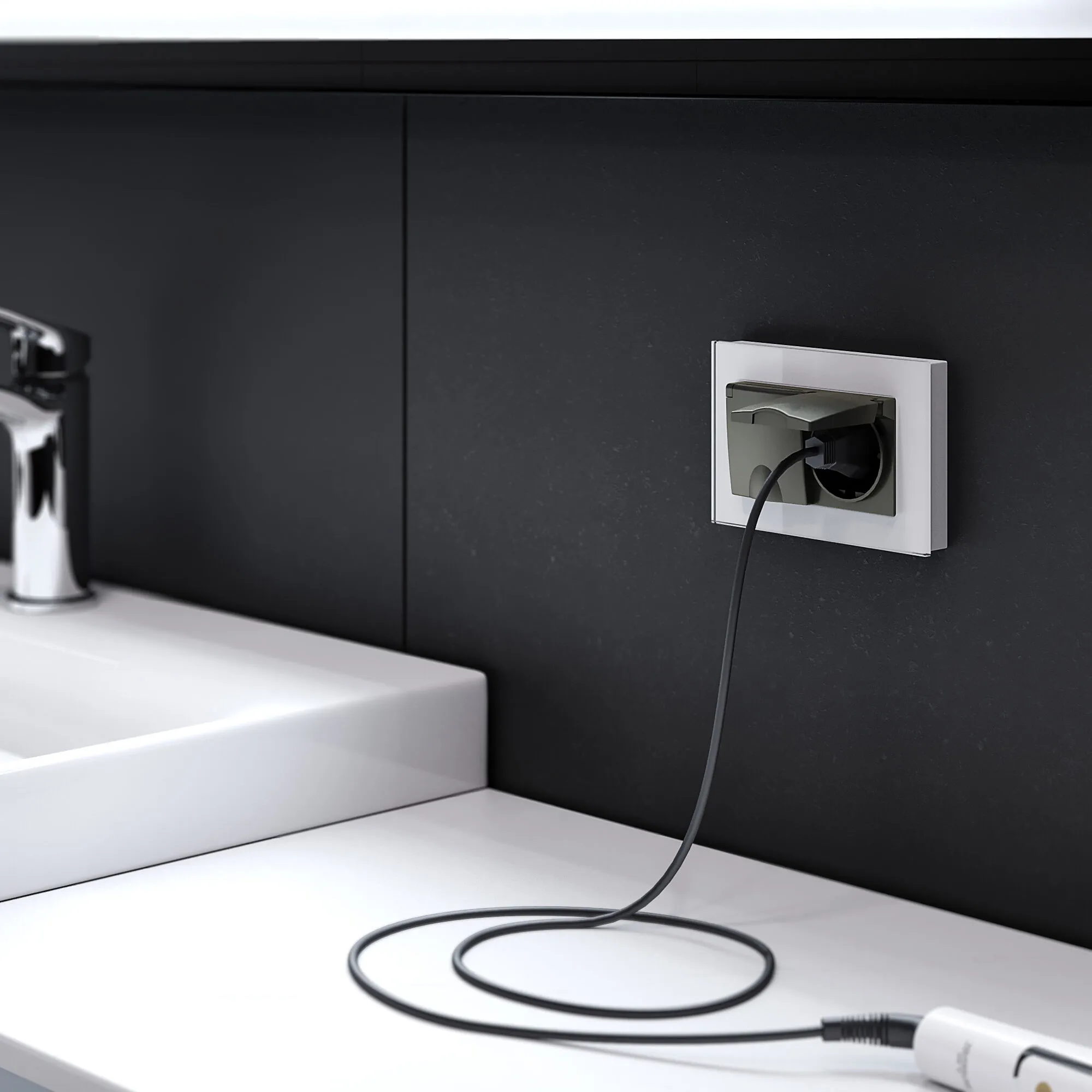 Двойная розетка с крышками – стильное и функциональное решение для установки в местах с повышенной влажностью. Розетка может располагаться возле раковин на кухне, в санузлах и прочих помещениях, где возможно попадание брызг.