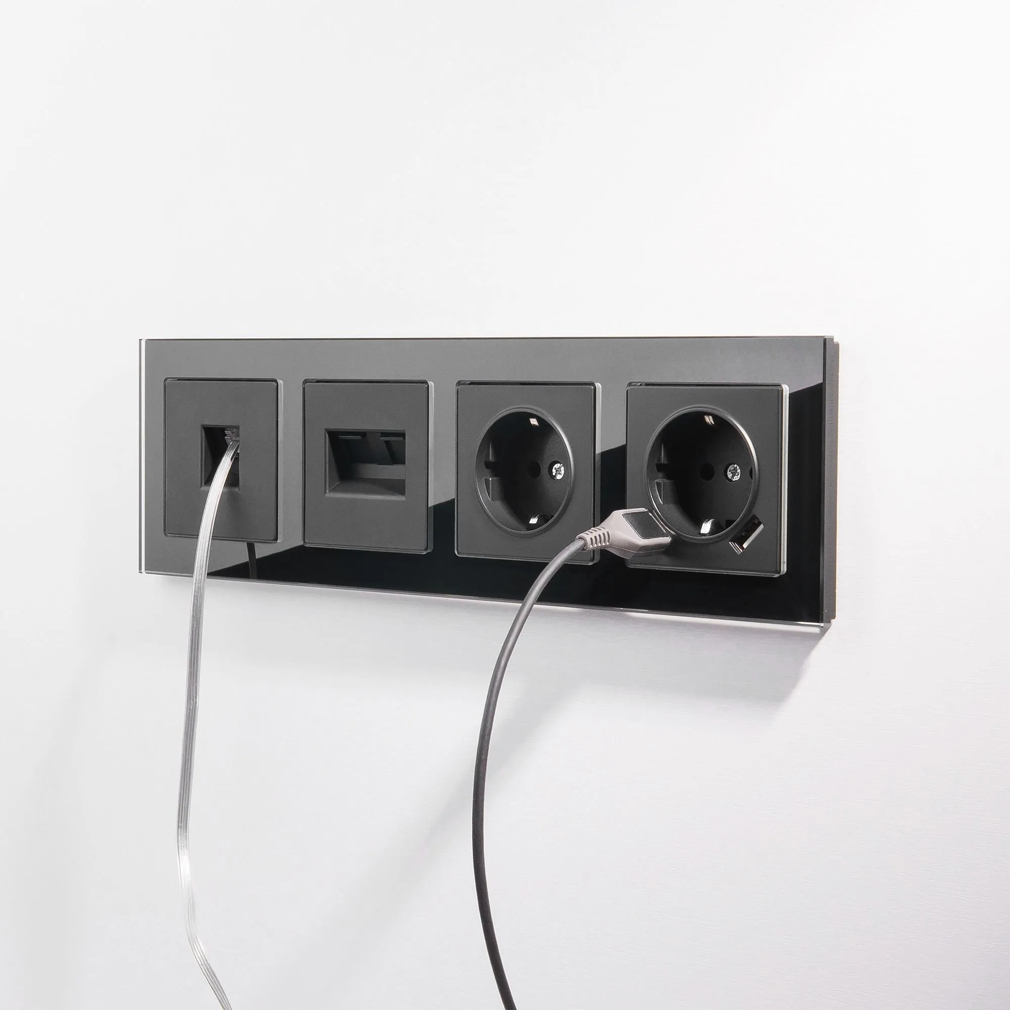 Розетка с заземлением и шторками (черный матовый) W1171108