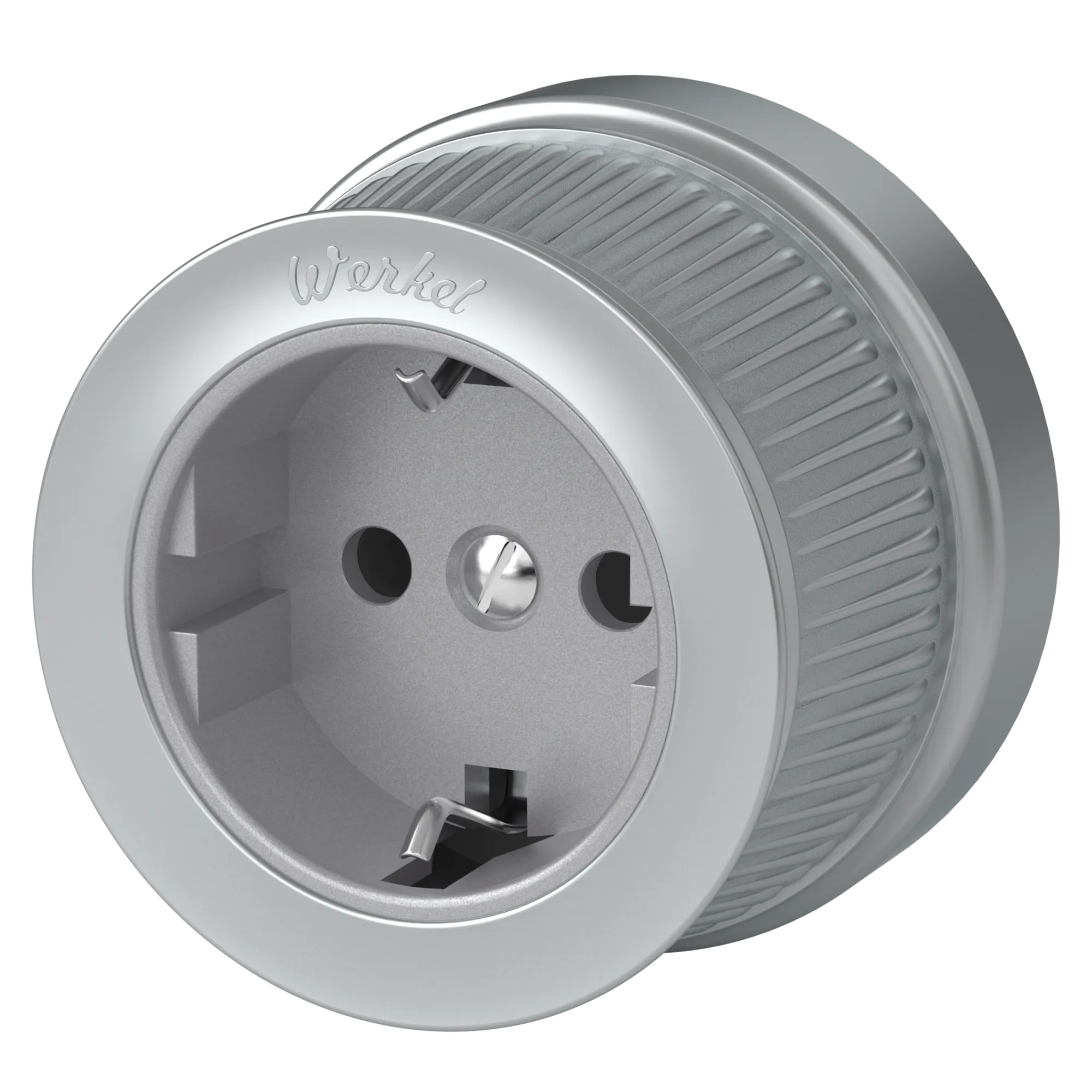 Розетка с заземлением (Матовый хром) ретро WL19-10-01
