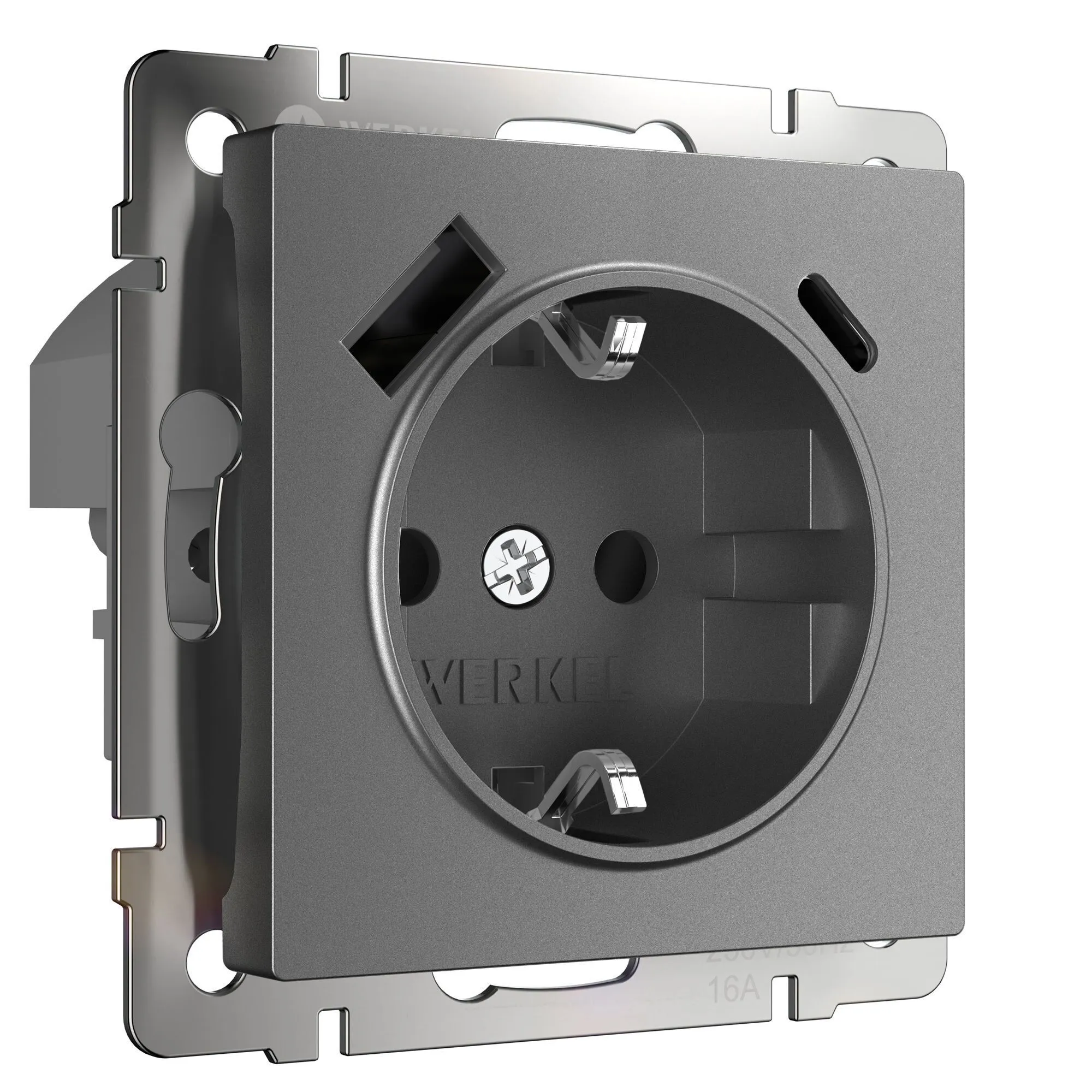 Розетка с заземлением, шторками и USB тип A+C (графит матовый) W1171764