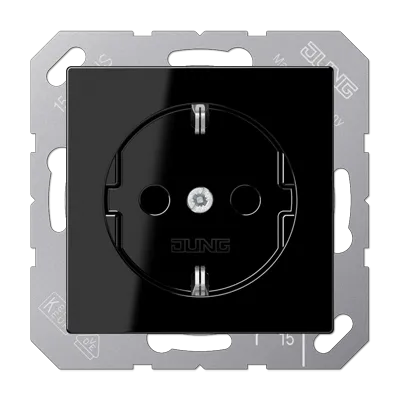 Розетка с заземлением и шторками 16А 250В A Flow черный глянцевый A1520KISW Jung