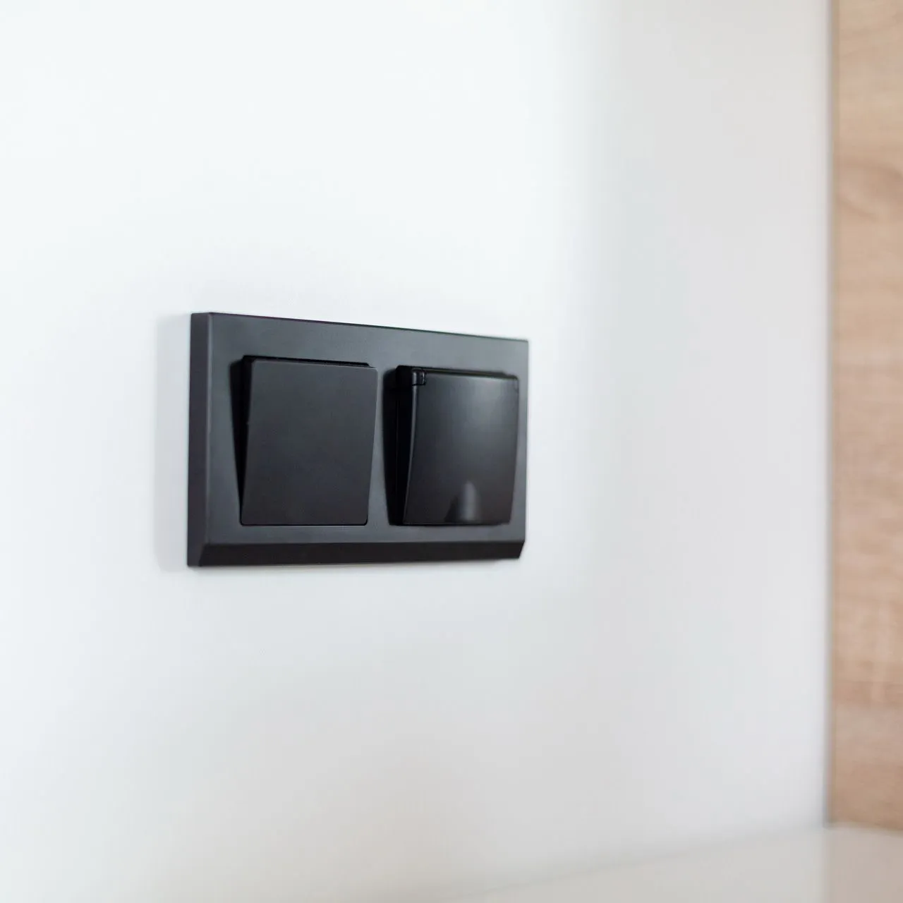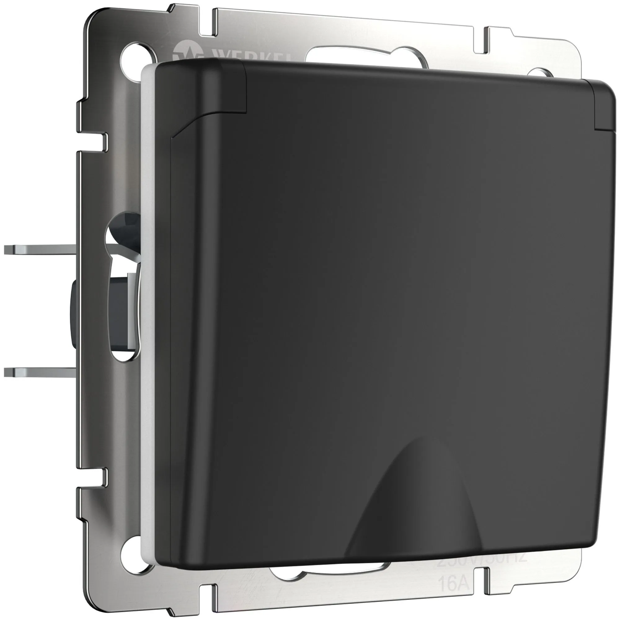 Розетка влагозащ. с зазем. с защит. крышкой и шторками (черный матовый) W1171208