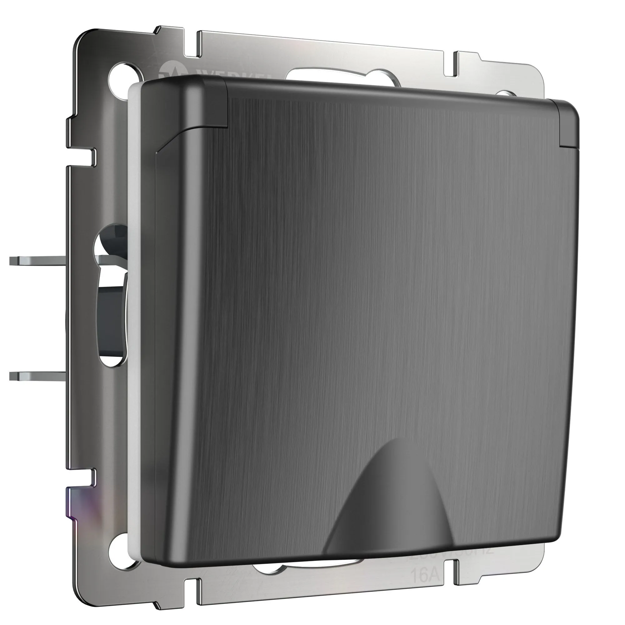 Розетка влагозащ. с зазем. с защит. крышкой и шторками (графит рифленый) W1171204