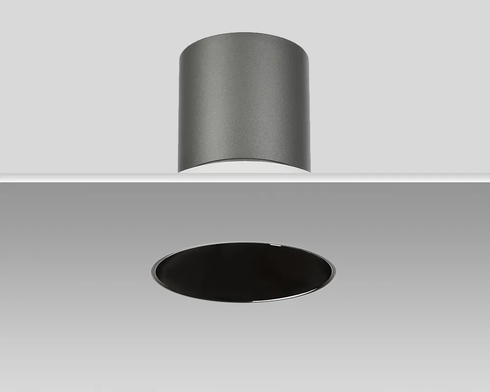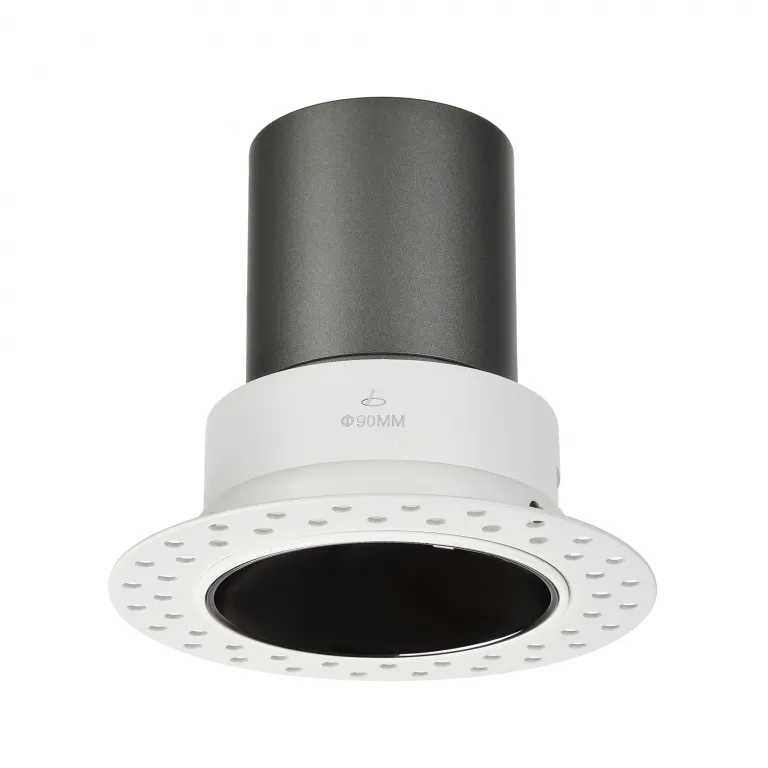 Безрамочный встраиваемый акцентный светодиодный светильник круглого сечения для монтажа под штукатурку.