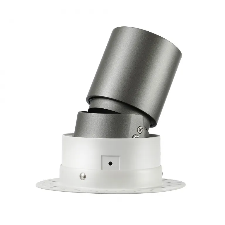 Безрамочный встраиваемый акцентный светодиодный светильник круглого сечения с функцией регулировки угла светового потока от 0° до 25° для монтажа под штукатурку.