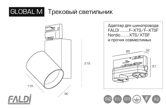 Трековый светодиодный светильник GLOBAL M для трехфазного шинопровода