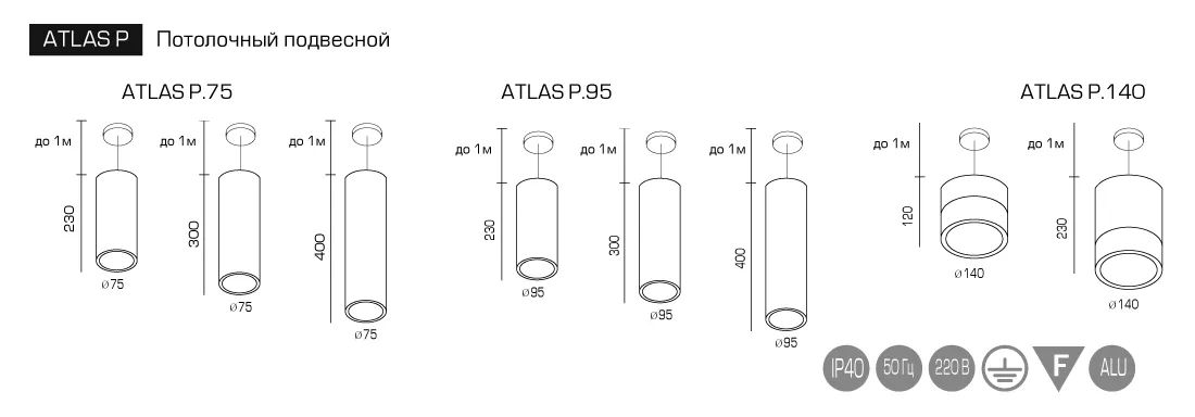 13 ATLAS P95.400.15 - 15 Вт 1950 Лм 3000K / 4000K / 5000K d95*300мм