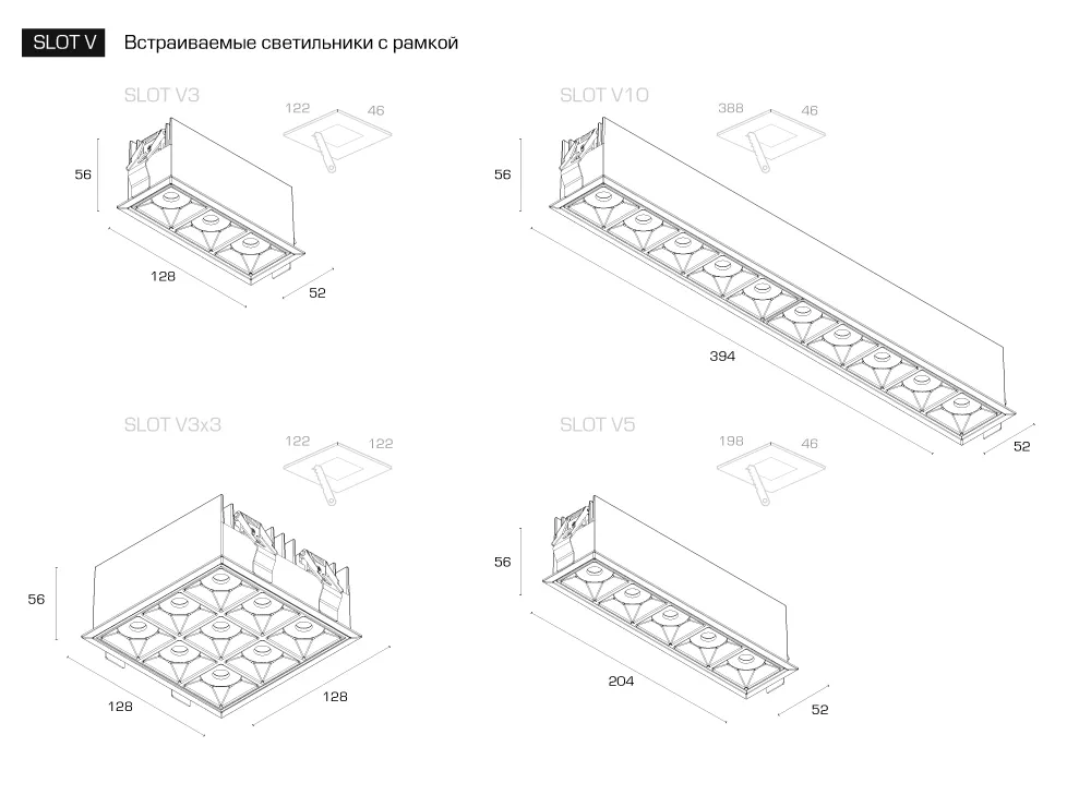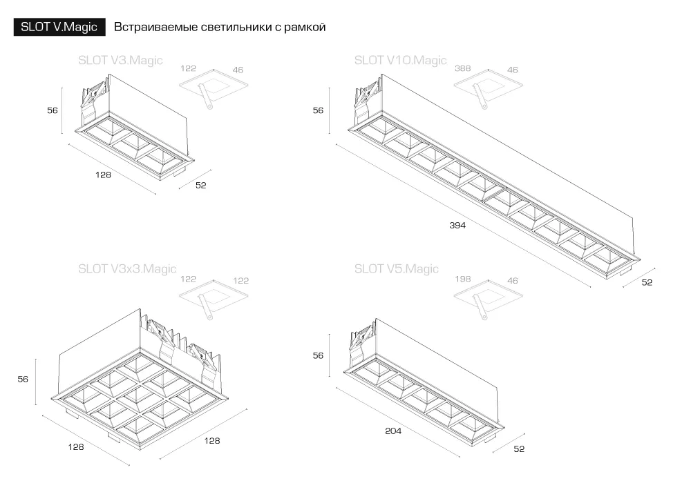 | 8 | SLOT.V.3x3.MAGIC | Асимметричная оптика 35°*70°. Источник тока Tridonic (Австрия) | 18 Вт | 2610 Лм | 5000K / 4000К / 3000К | 128*128*56 мм |
