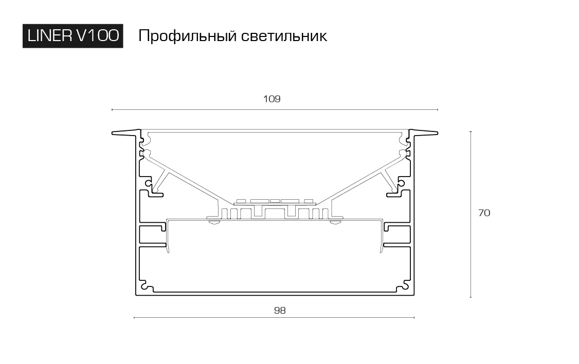 | 7 | LINER V100-L40 | Источник тока Tridonic (Австрия) | 40 Вт | 4800 Лм | 5000K / 4000К / 3000К | 2002 x 98(110) x 70 мм |